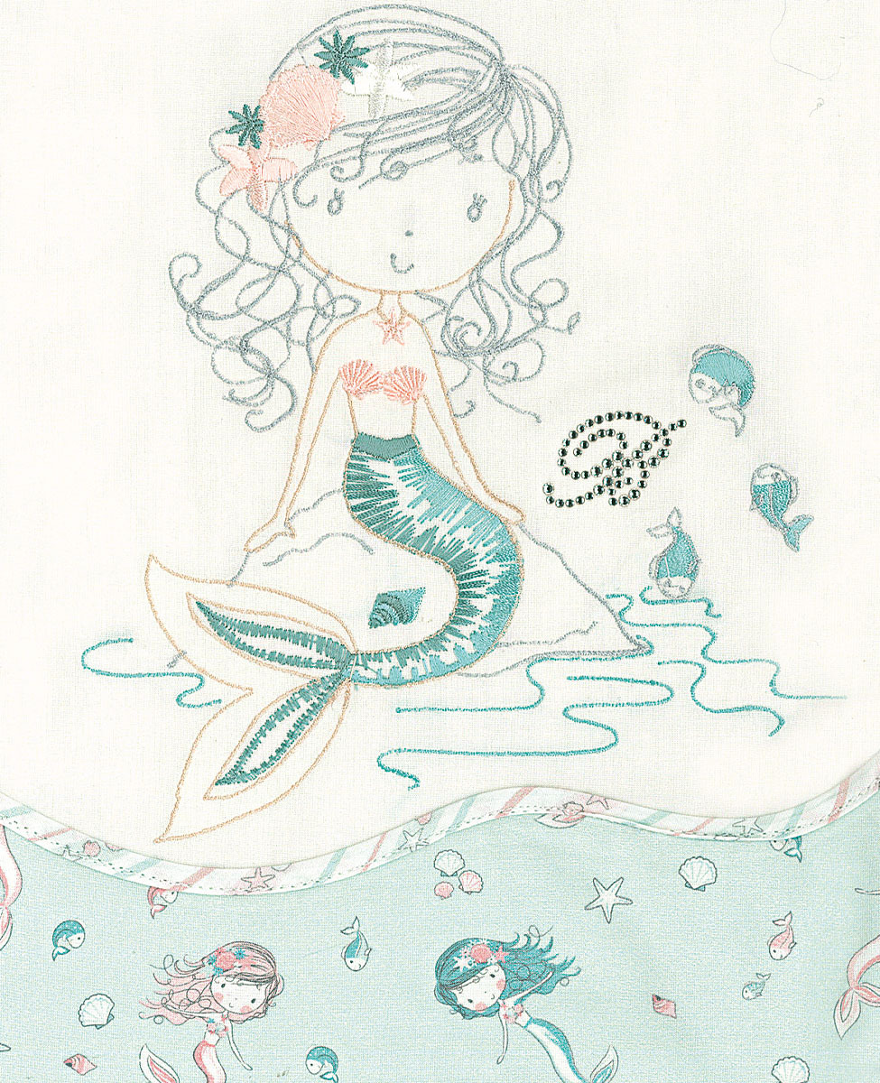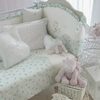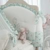 Bumper with embroidery. Front side with rounded border and double flounce. Top part in plain cotton with central embroidery and Blumarine logo in Swarovski crystals. Bottom part and backside in printed cotton percale.