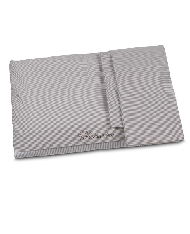 Duvet cover set for baby cradle in pure cotton with striped printed pattern and Blumarine logo in Swarovski crystals.