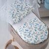 Duvet cover set for baby cradle Piccola Luna with flower and butterfly printed pattern and Blumarine monogram in crystals.