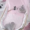 Duvet cover set for baby cradle with striped printed pattern and Blumarine logo in crystals.