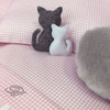 • duvet cover 70x85 cm: top side in striped printed percale with band in houndstooth print and logo in crystals.