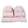 Towel set 2 pieces in terry cloth solid color, with jacquard border and Blumarine logo.