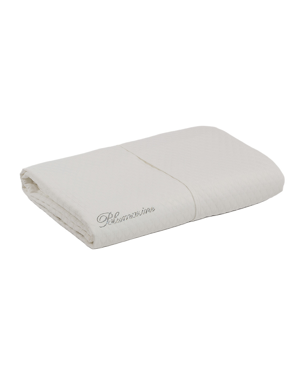 Unquilted bedspread for single bed in matelassé jacquard with Blumarine logo in crystals and rounded corners.