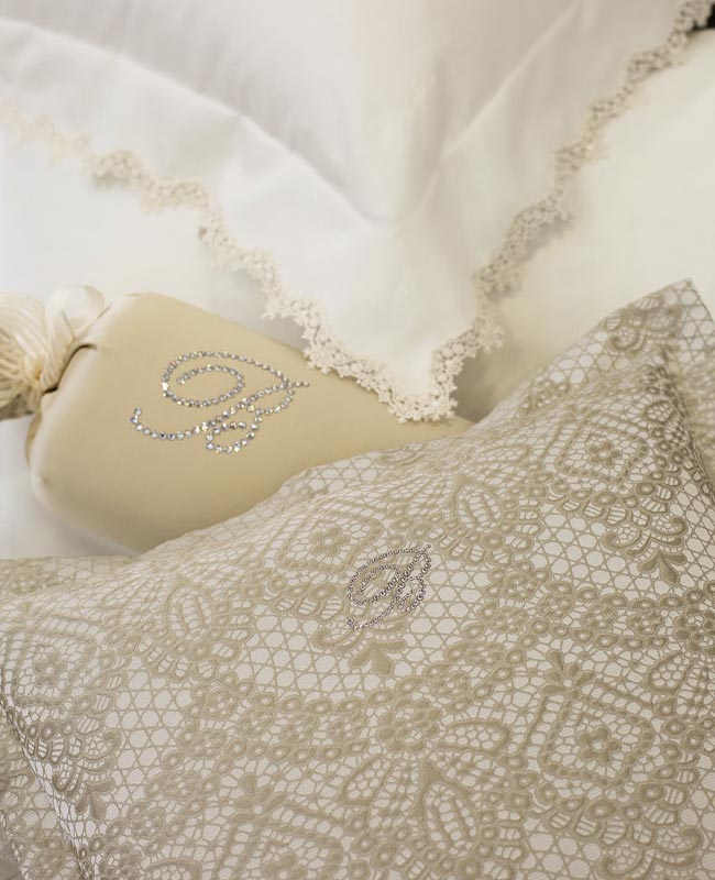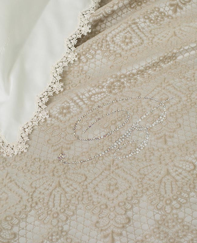 Fine quilted bedspread for double bed in jacquard with Blumarine logo in Swarovski crystals.