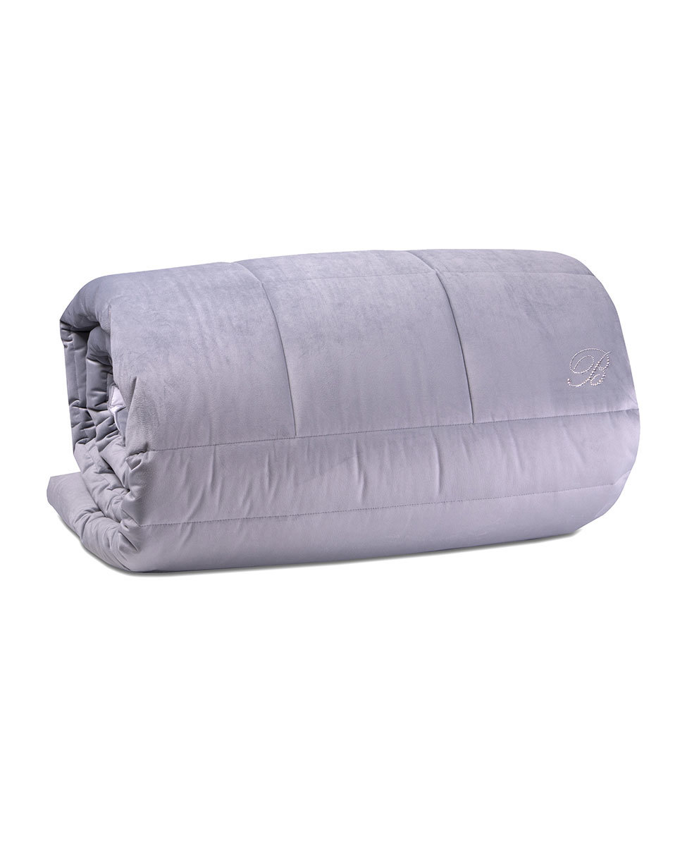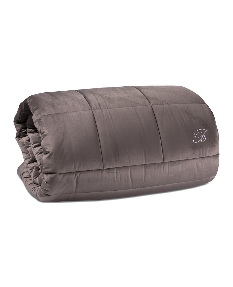 Quilted comforter for double bed in solid velvet with Blumarine logo in Swarovski crystals.