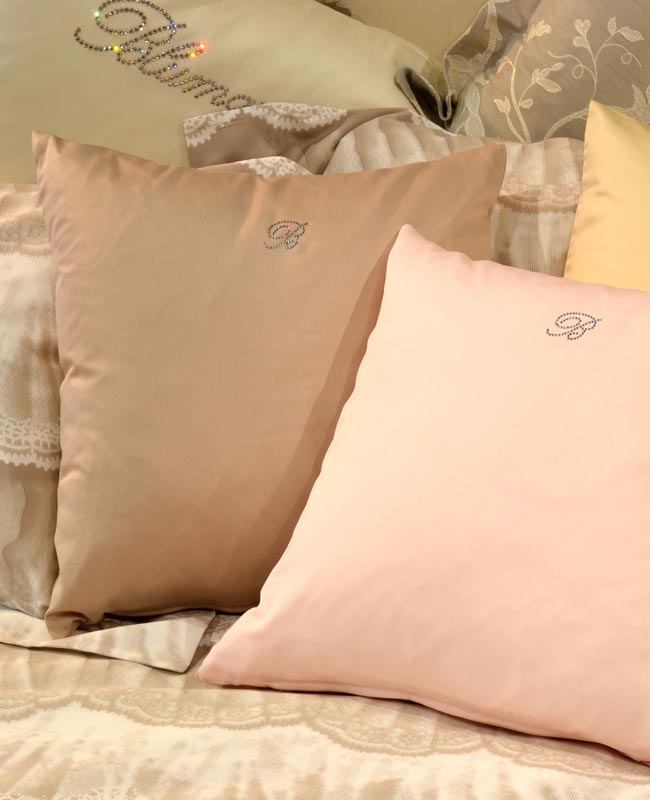 Decorative cushion in pure cotton sateen plain color with Blumarine logo in Swarovski Crystals.