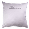 Versatile decorative cushion in solid color ottoman fabric with Blumarine sign logo in Swarovski crystals. To be matched with all comforters and bedspreads.