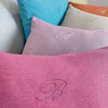 Decorative cushion in yarn-dyed solid color fabric with B monogram embroidered.