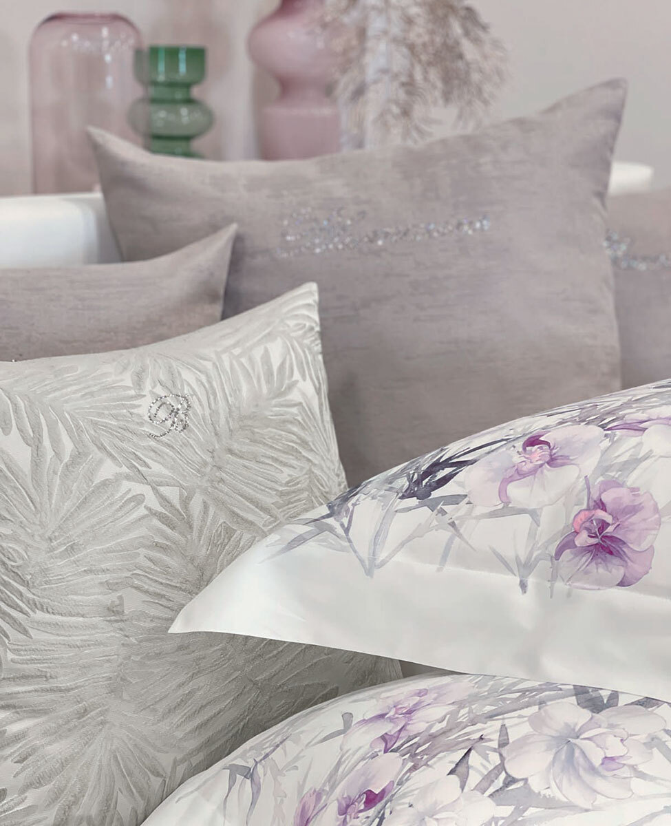 Decorative cushion in jacquard pattern with Blumarine logo in crystals and removable padding.