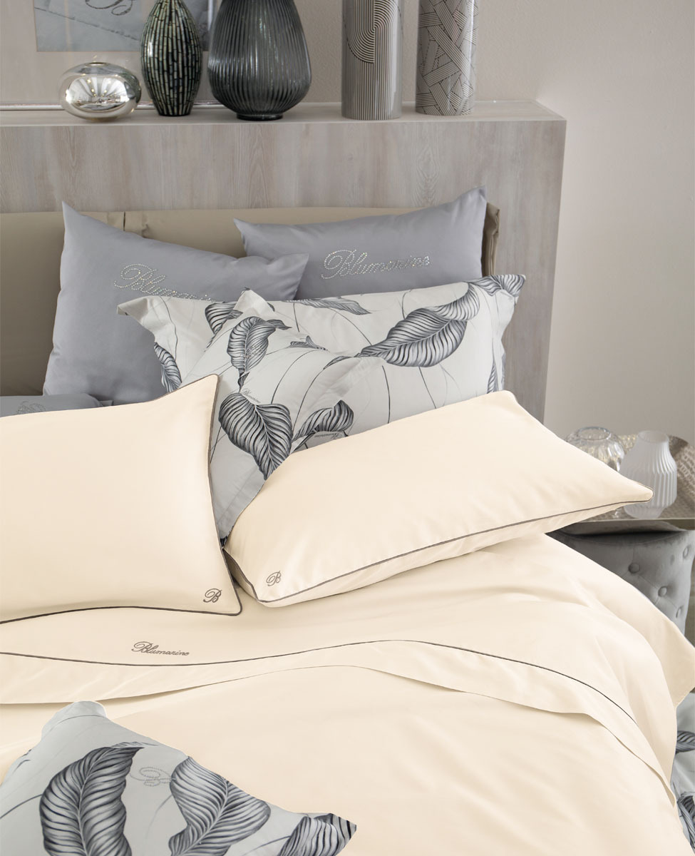 Duvet cover set in solid cotton sateen with contrasting color border and embroidered Blumarine logo.