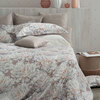 Duvet cover set for double bed in cotton sateen with all-over printing on pillowcases and topside of the duvet, bottom sheet in solid cotton sateen, printed Blumarine logo in the pattern.