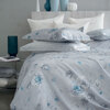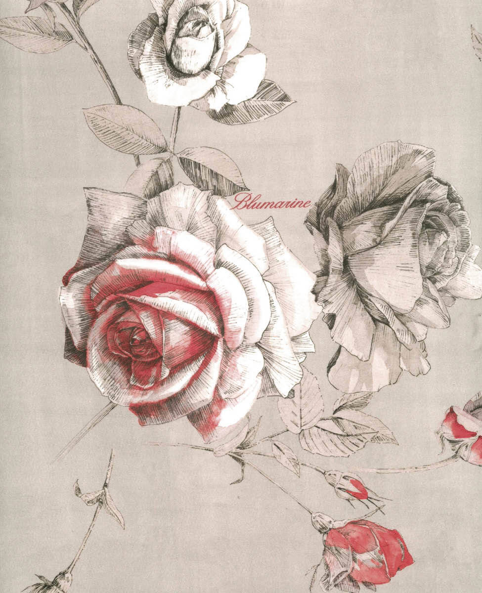 Duvet cover set for double bed in cotton sateen with all-over printing on pillowcases and topside of the duvet, bottom sheet in solid cotton sateen, printed Blumarine logo in the pattern.