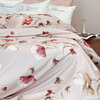 Duvet cover set for double bed in cotton sateen with all-over print on pillowcases and topside of the duvet, bottom sheet in solid cotton sateen, printed Blumarine logo in the pattern.