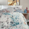 Duvet cover set 3 pcs for double bed in cotton sateen with all-over printing on topside of the duvet, all-over print on pillowcases with 3 flanges, bottom side in solid color, printed Blumarine logo in the pattern.
