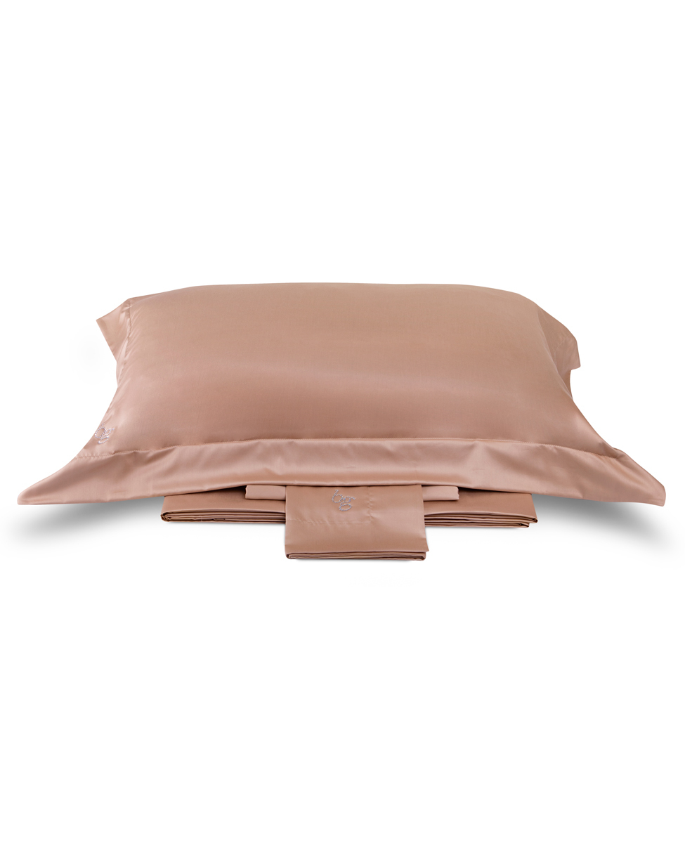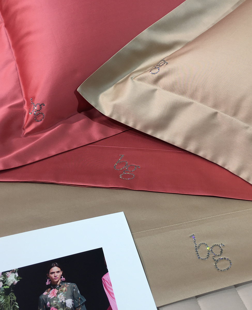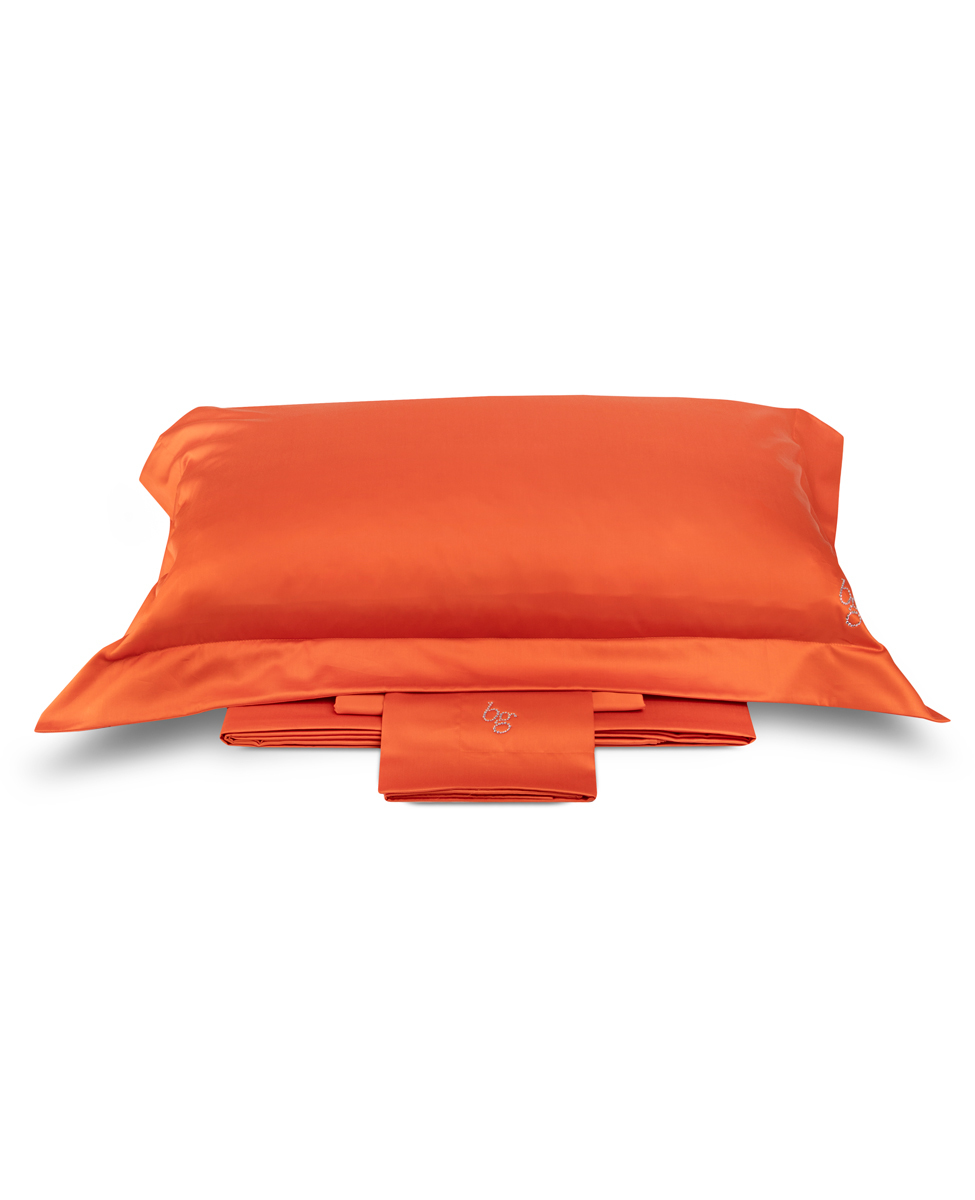 Sheet set for single bed 3 pieces in pure solid cotton sateen with Blugirl logo in crystals.