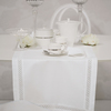 Runner in solid color finished with entre-deux and embroidered Blumarine logo.
