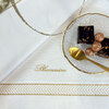 Solid-color runner in a cotton blend, finished with an embroidered Lurex-thread border and an embroidered Blumarine logo.
