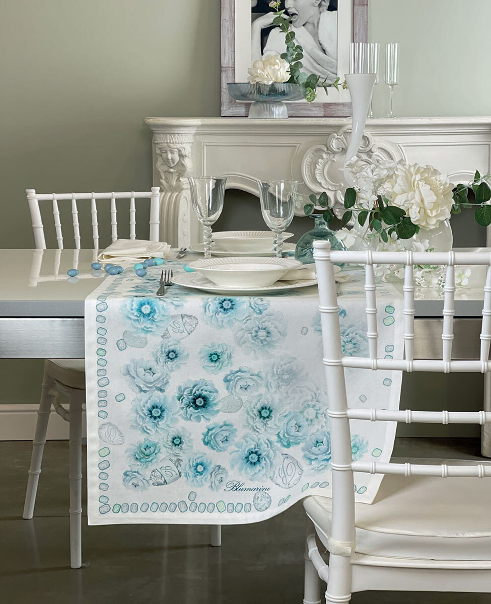Runner in panama cotton with printed pattern and Blumarine logo.