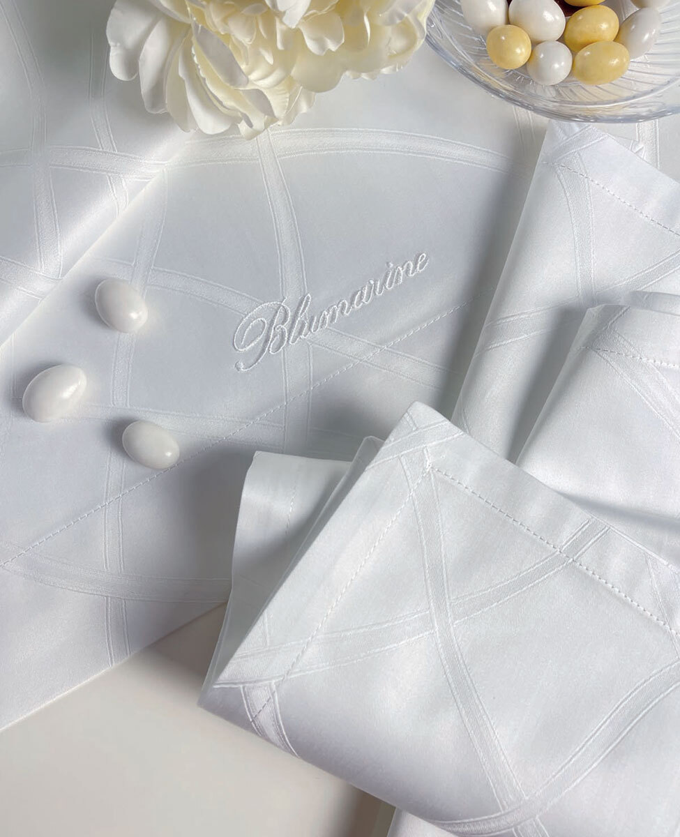 Placemat set in solid-color jacquard damask with embroidered Blumarine logo.