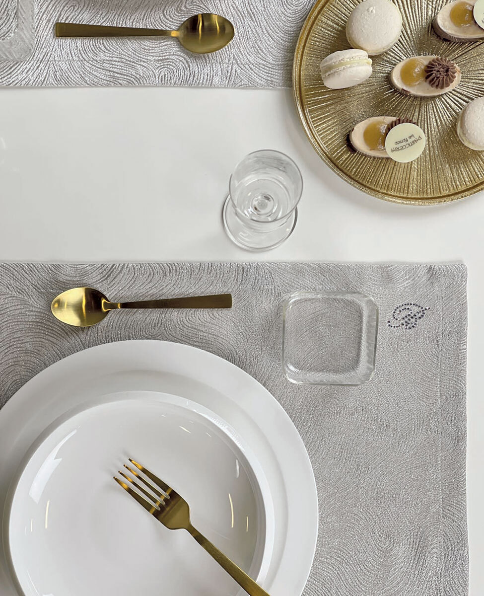 Set of 2 placemats in jacquard fabric with Blumarine logo in crystals.
