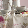 Tablecloth in linen for 10/12 seats with elegant print and Blumarine logo in the pattern, elegantly packed in box, perfect for a gift idea.