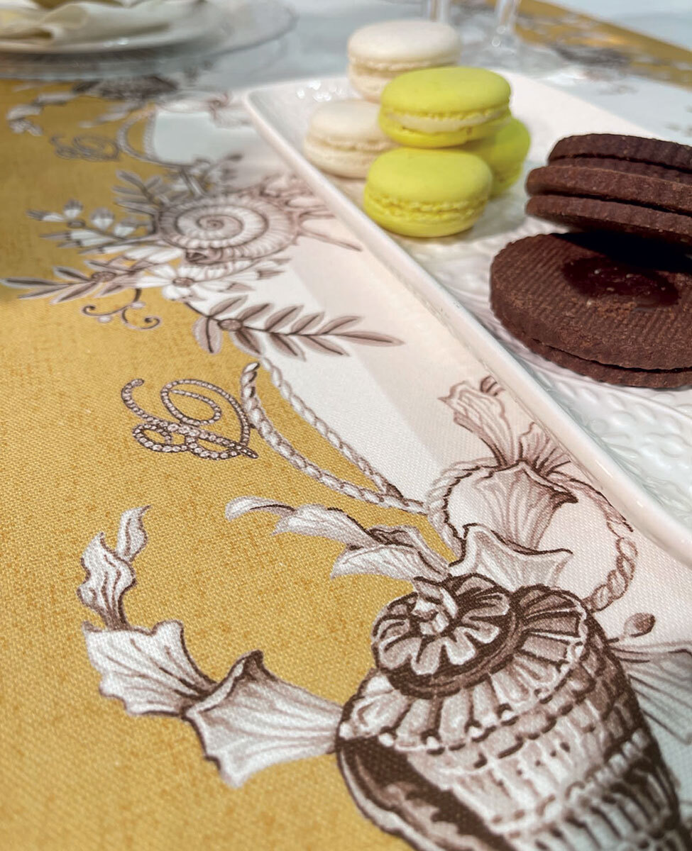 Tablecloth for 10/12 seats in panama cotton with printed pattern and Blumarine logo, elegantly packed in box, perfect for a gift idea.