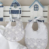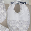 Bavaglino costruito in percalle di cotone stampato e nido d'ape con monogramma Blumarine in cristalli.