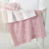 Copertina per culla e carrozzina con disegno in jacquard piazzato con rose e cuori e logo Blumarine in cristalli Swarovski.