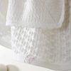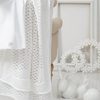Copertina 100% puro cotone per culla e carrozzina, disegno in jacquard piazzato con volantino e logo Blumarine in cristalli Swarovski.