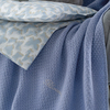 Copertina baby per culla e carrozzina in tinta unita rifinita con punto pettine e logo Blumarine in cristalli.