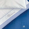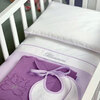 Completo copripiumino 4 pezzi per culla in percalle di cotone tinta unita con righine tinte in filo e logo Blumarine in cristalli.