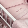 Completo copripiumino per culla in raso di cotone tinta unita rifinito con lista in macramè e logo Blumarine ricamato.