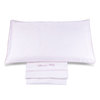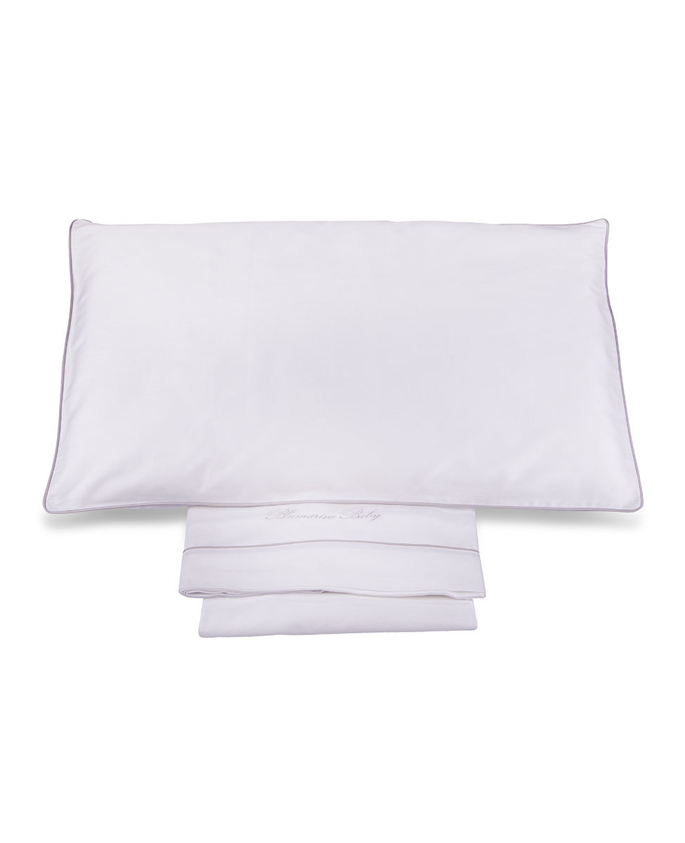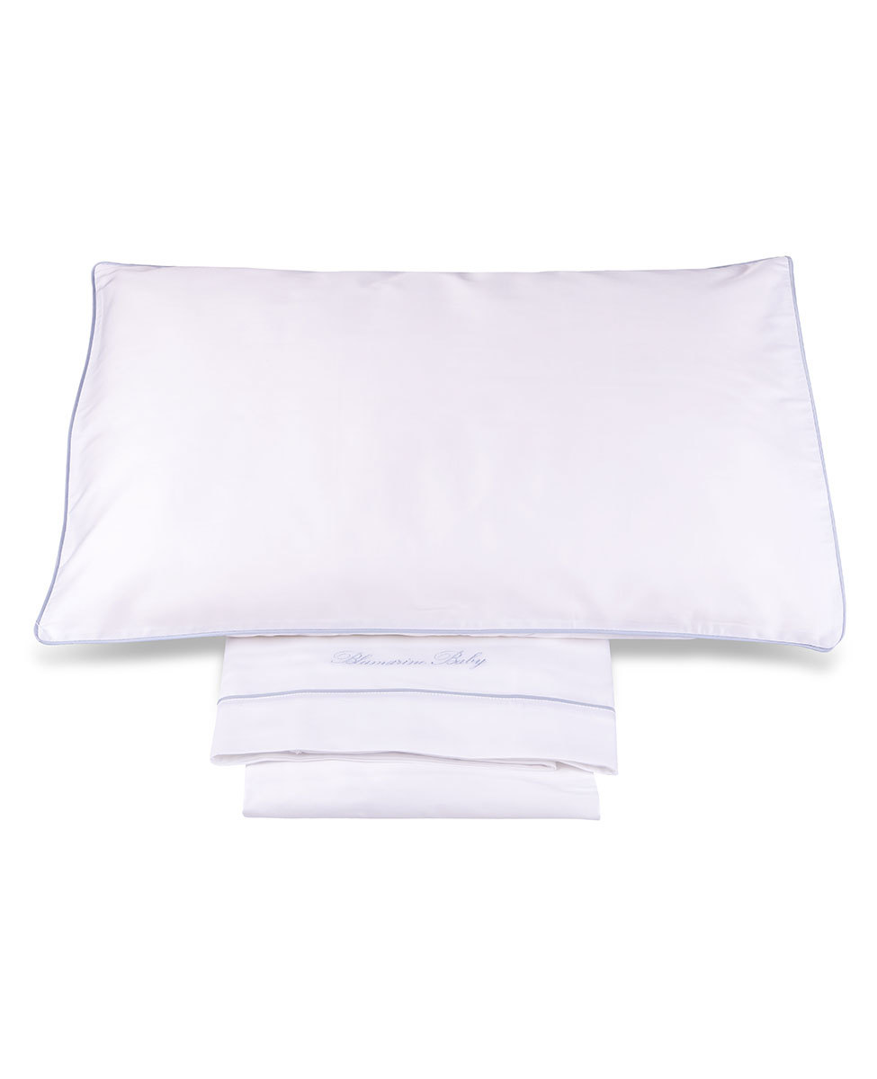 Completo lenzuola per lettino in raso tinta unita con profilo a contrasto e logo Blumarine Baby ricamato.