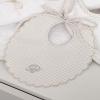 Bavaglino neonato corredino con parte davanti e retro stampati pied de poule e logo Blumarine in cristalli Swarovski, rifinito con piccolo smerlo.