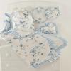 Asciugamano clinico double face con parte davanti in percalle stampato e logo Blumarine in cristalli Swarovski, parte dietro in spugna riccio tinta unita, doppio volantino stampato a quadretti.