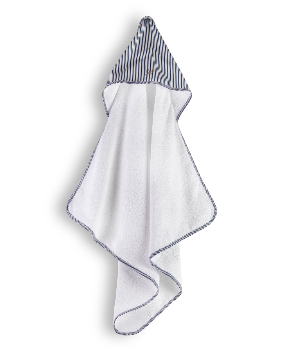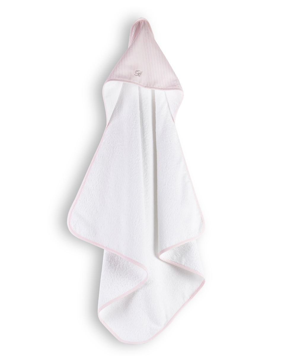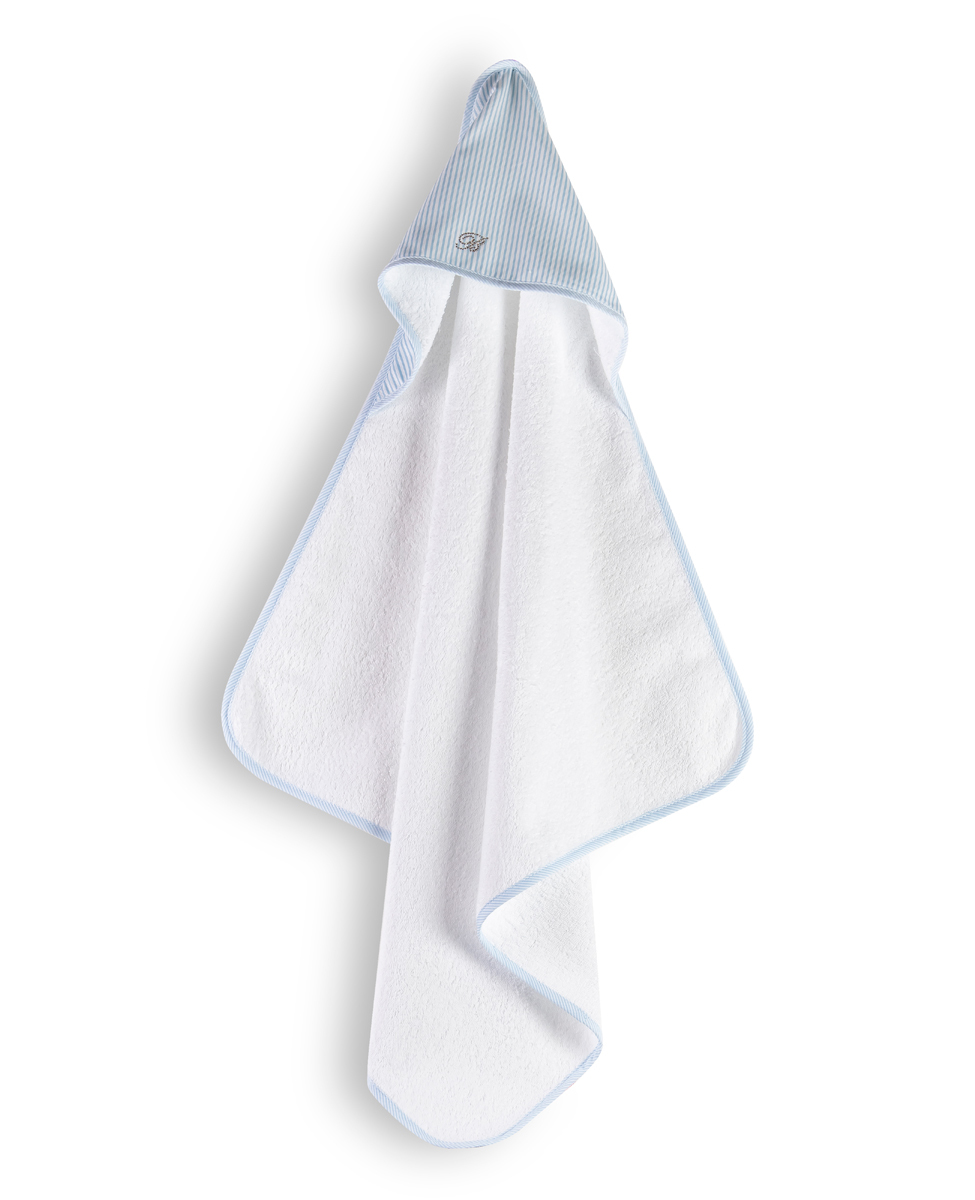 Triangolo in spugna con cappuccio profilato con sbieco e monogramma Blumarine in cristalli Swarovski.