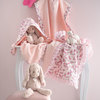 Triangolo in spugna con cappuccio profilato con sbieco e logo Blumarine in cristalli.