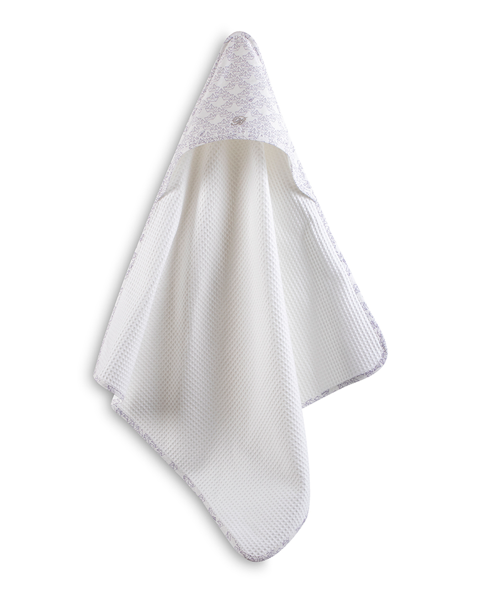 Triangolo in nido d'ape con cappuccio profilato con sbieco e logo Blumarine in cristalli.