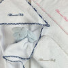 Triangolo in spugna con cappuccio profilato in sbieco e logo Blumarine ricamato.