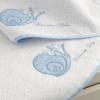 Set teli bagno per bimbo, coppia 1+1 con Lumachina ricamata, finitura con sbieco stampato Sangallo e ricamo piazzato, logo Blumarine presente nel ricamo.
