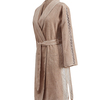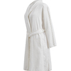 Accappatoio con collo sciallato, lista in tulle ricamata cucita ad intarsio sulle maniche e sugli spacchi laterali, logo Blumarine ricamato, taglia S.