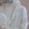 Accappatoio con cappuccio tinta unita in velour con farfalle ricamate su macramè in rilievo e monogramma B Blumarine ricamato, taglia S/M.