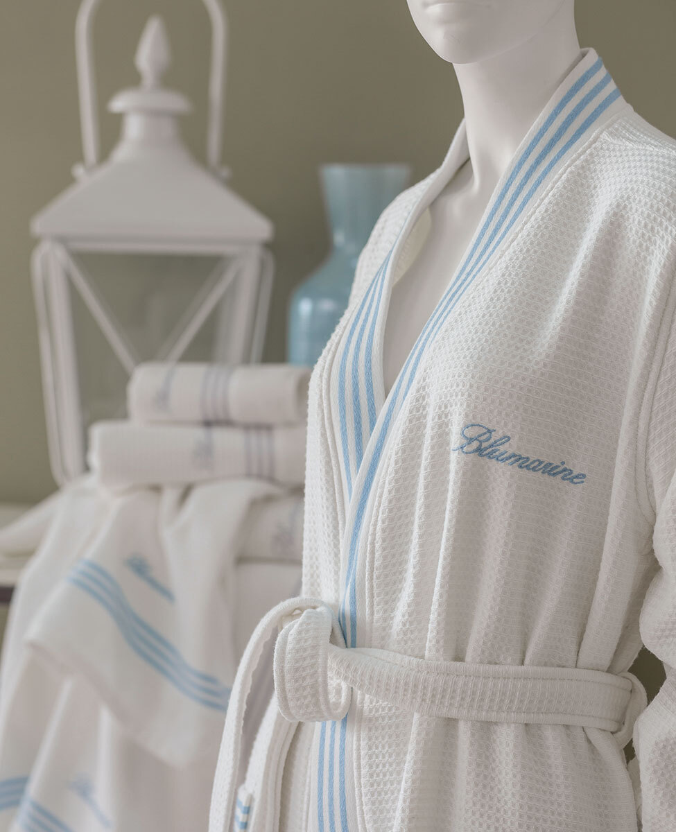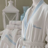 Accappatoio modello kimono in spugna di cotone a nido d’ape tinta unita.