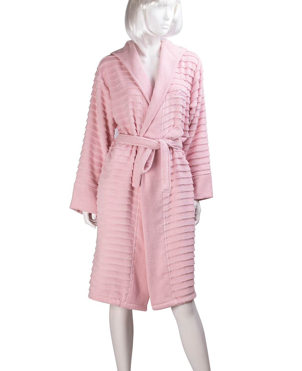 Accappatoio con cappuccio tinta unita in jacquard con logo Blumarine ricamato, tasche inserite nei fianchi, taglia S/M.
