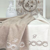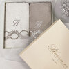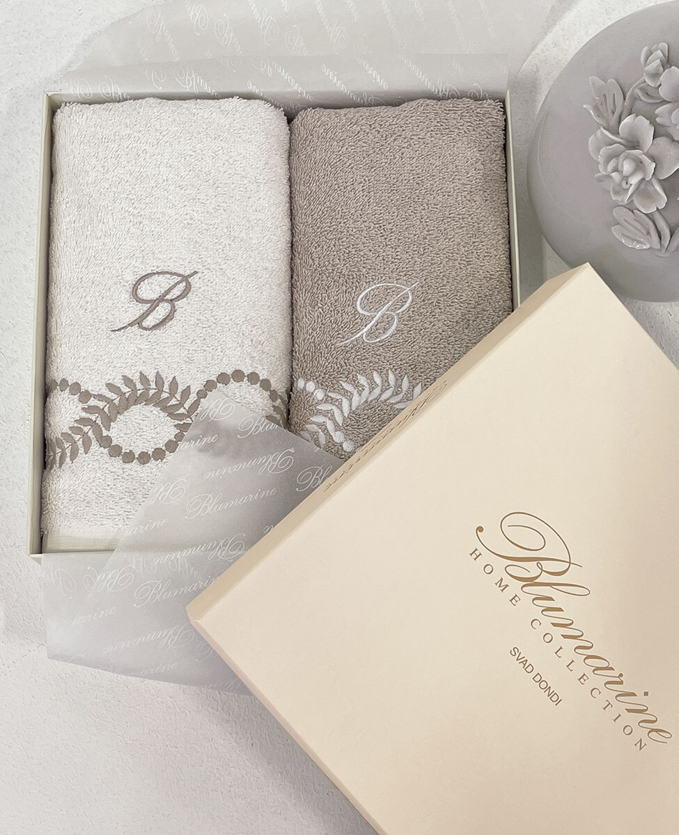 Coppia 1+1 di asciugamani in spugna di cotone con motivo ad onde e logo Blumarine ricamato, bicolore.