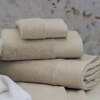 Coppia 1+1 di asciugamani in spugna di cotone idrofilo tinta unita con balza finale e logo Blumarine piazzato in jacquard tinto filo in lurex.