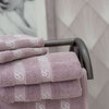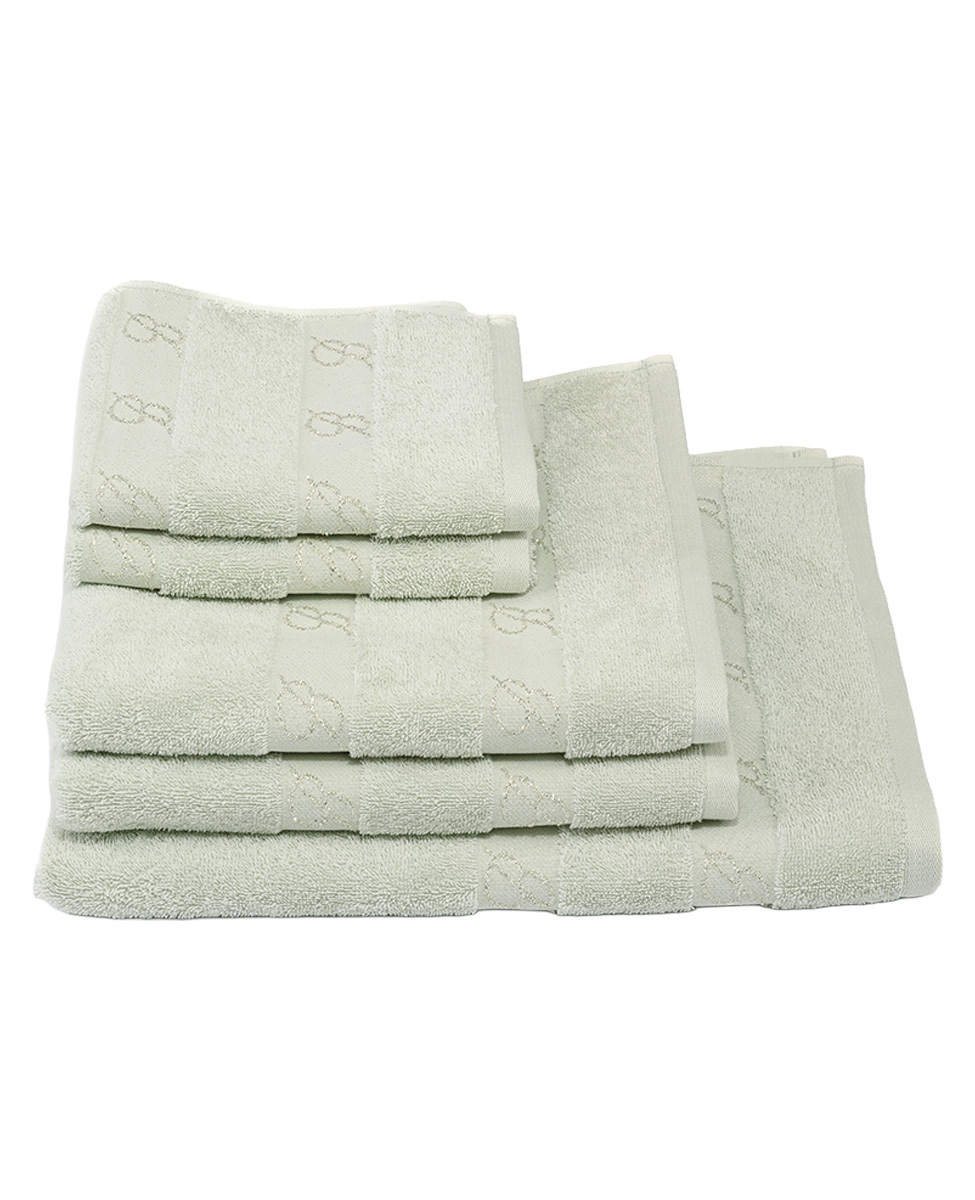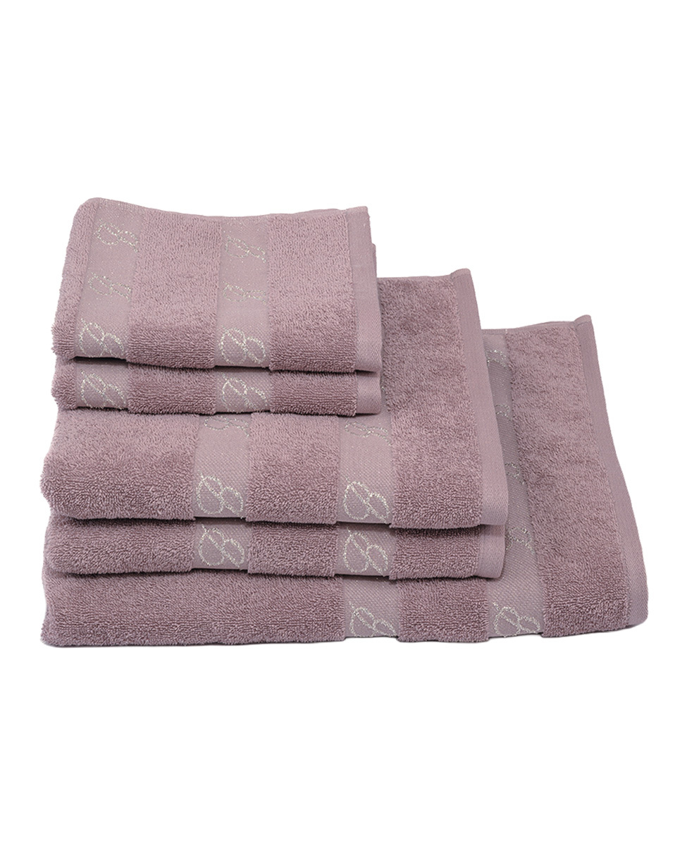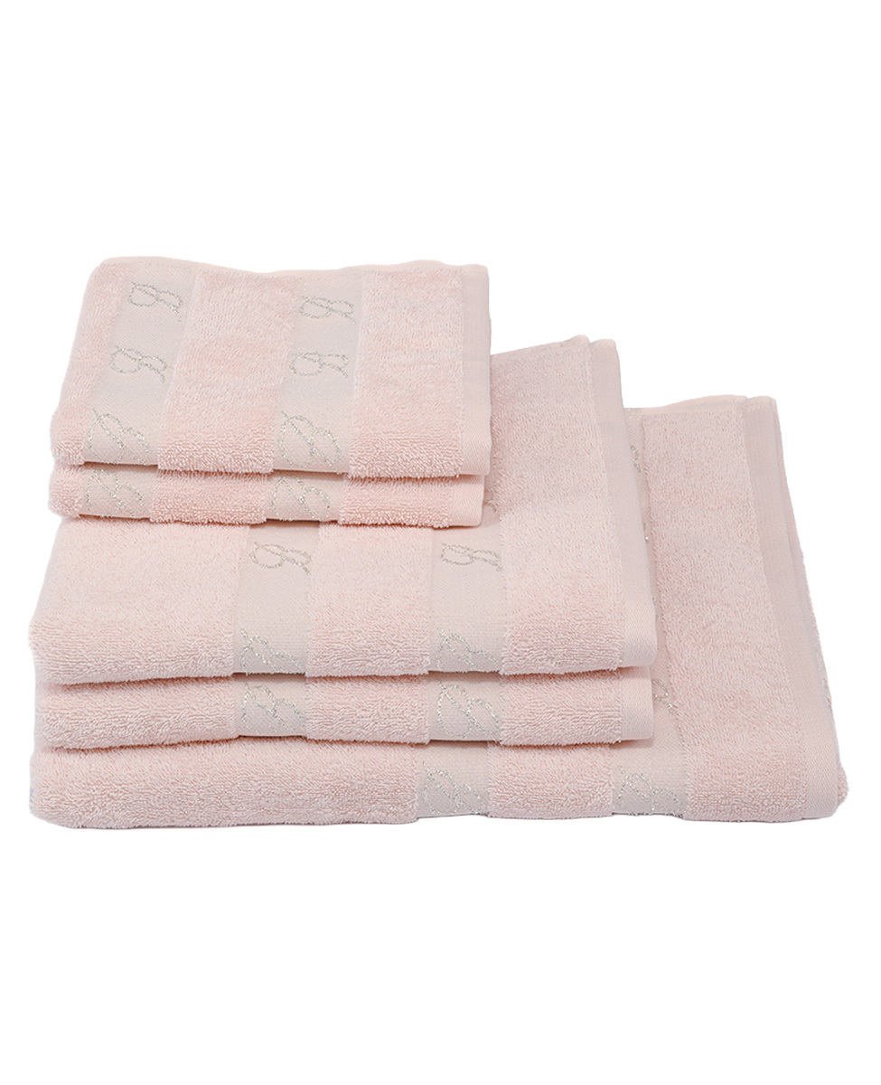 Coppia 1+1 di asciugamani tinta unita con doppia balza finale e logo Blumarine in jacquard tinto filo in lurex.