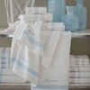 Set da 5 asciugamani in spugna di cotone tinta unita a nido d'ape con balza jacquard tinto in filo a righe e logo Blumarine ricamato.