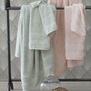 Set 5 pezzi di asciugamani tinta unita con doppia balza finale e logo Blumarine in jacquard tinto filo in lurex.