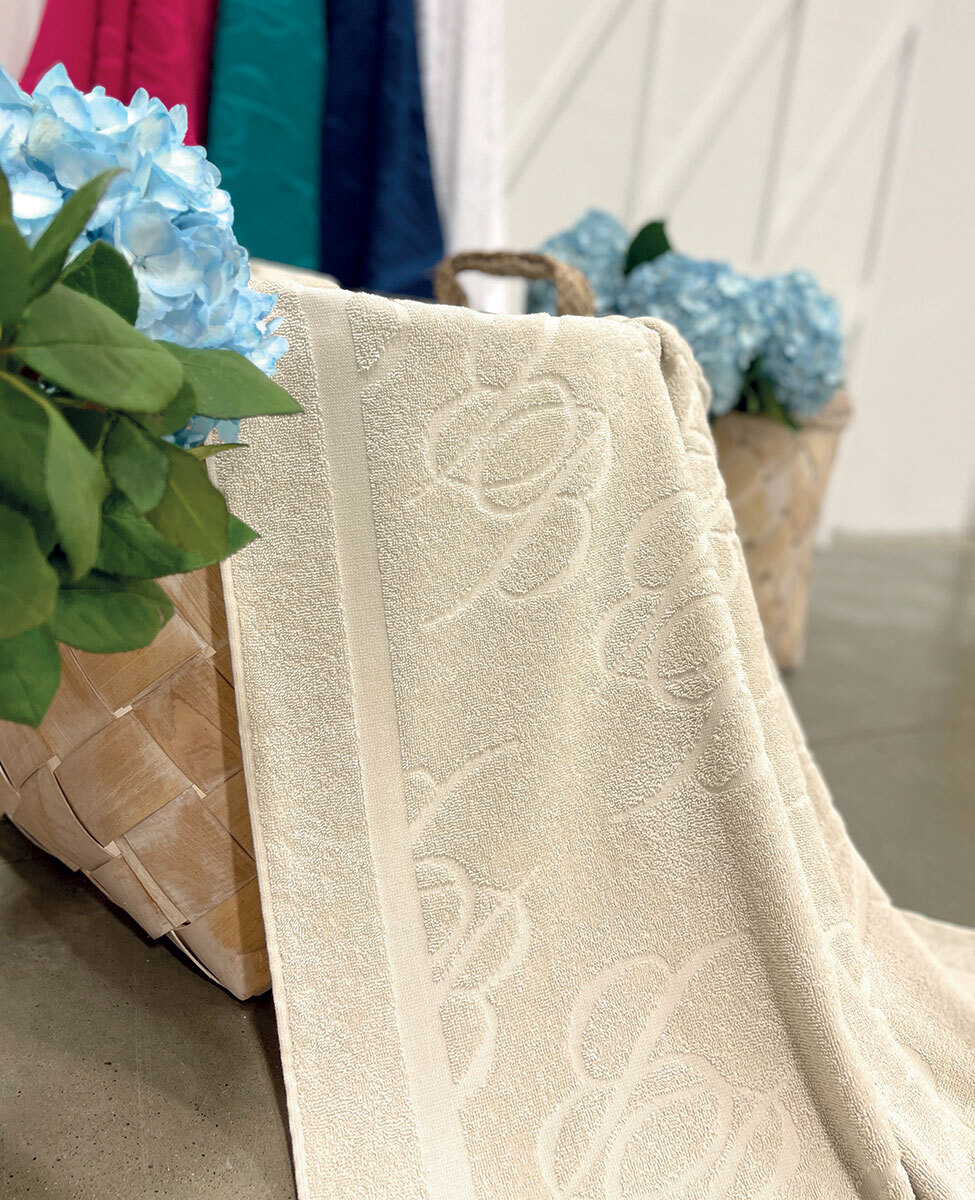 Telo mare tinta unita in jacquard con monogramma doppia B cesellato su base spugna riccio.